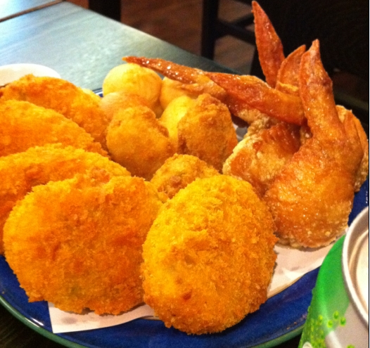 超熱氣的一堆天婦羅。。海蝦, 矮瓜, 蕃薯。。也是一切正常。。但自身的油脂分泌開始不正常。。