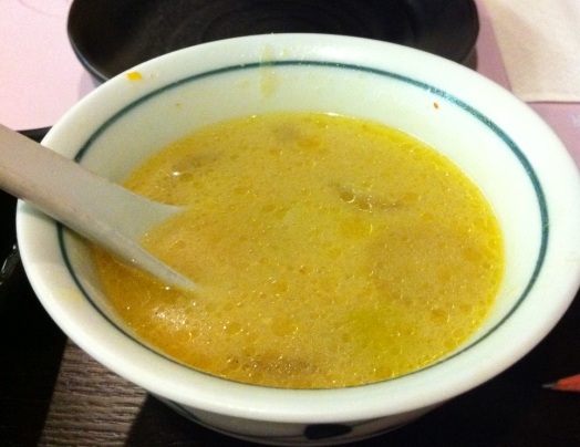 接著就是小弟自私地只寫了一碗的「三文魚濃湯」。。確實是碗名副其實的濃湯。。味精特濃, 愈喝愈口渴