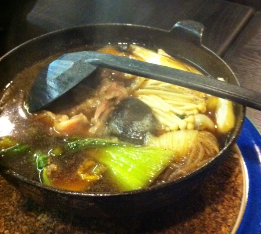 這個日式牛肉雜菜鍋不錯, 牛肉湯底甜甜的, 撈飯的話絕對一流