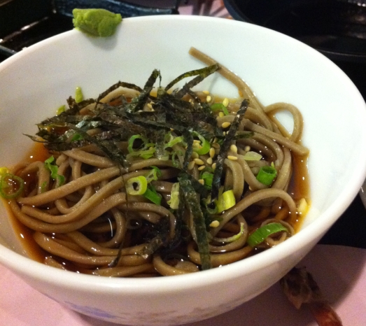 蕎麥麵。。旁邊那芥辣, 聯想起小學時代那些鼻屎獸。。味道麻麻, 醬汁似乎過濃, 可能份量少的關係, 那堆葱搶了蕎麥麵的味道, rip
